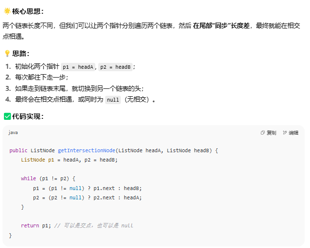 那么时间复杂度是多少?若链表长度分别为m和n,最好的结果是一开始就相等(O(1)),最差是末尾相等(O(m+n))